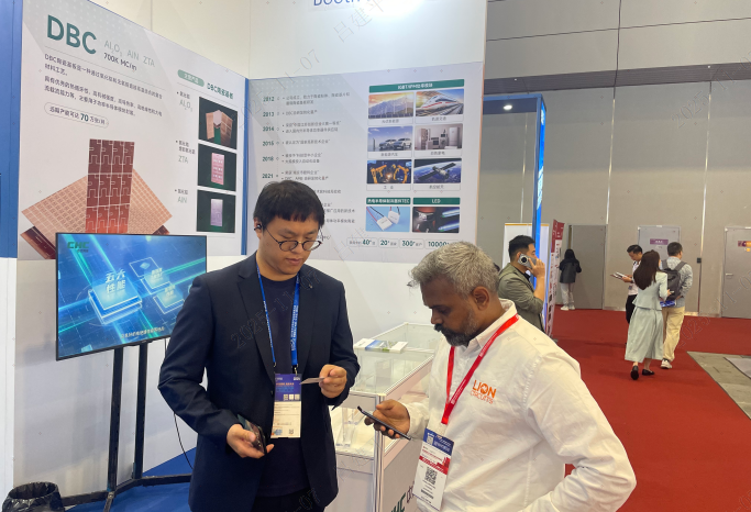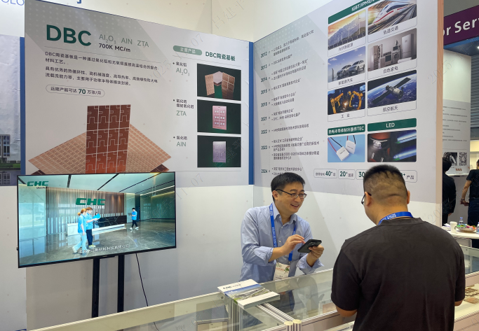 展会上公司重点展示了 DBC(直接覆铜)、DBA(覆铝)、AMB(活性金属钎焊)陶瓷基板-----三大核心产品系列。此类产品作为功率半导体封装的关键基础材料,广泛应用于新能源汽车、光伏逆变器、航空航天、轨道交通、白色家电等高可靠性领域。